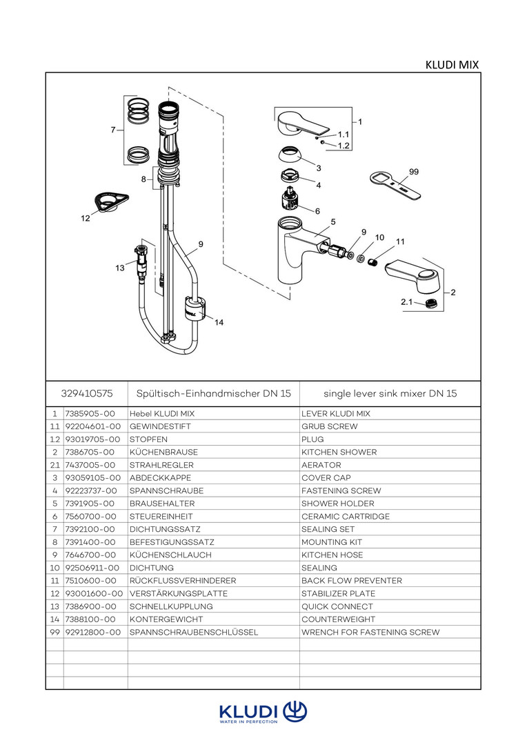 KLUDI MIX Spültisch-Einhebelmischer geschlossener Hebel, schwenkbarer Auslauf, chrom W325217