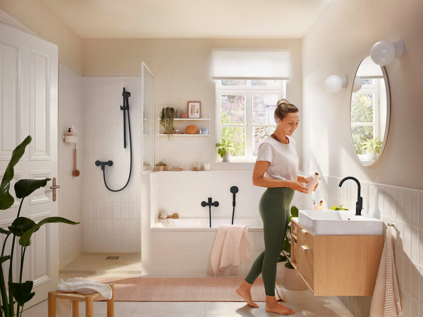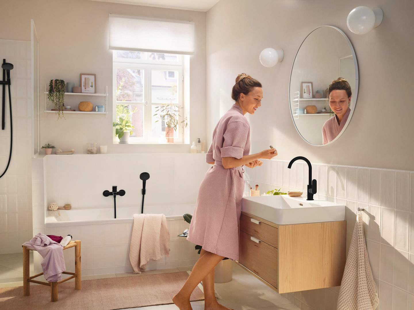 hansgrohe Waschtisch-Einhebelmischer Rebris S 210 mit Schwenkauslauf, Zugstangen-Ablaufgarnitur, mattschwarz W302095