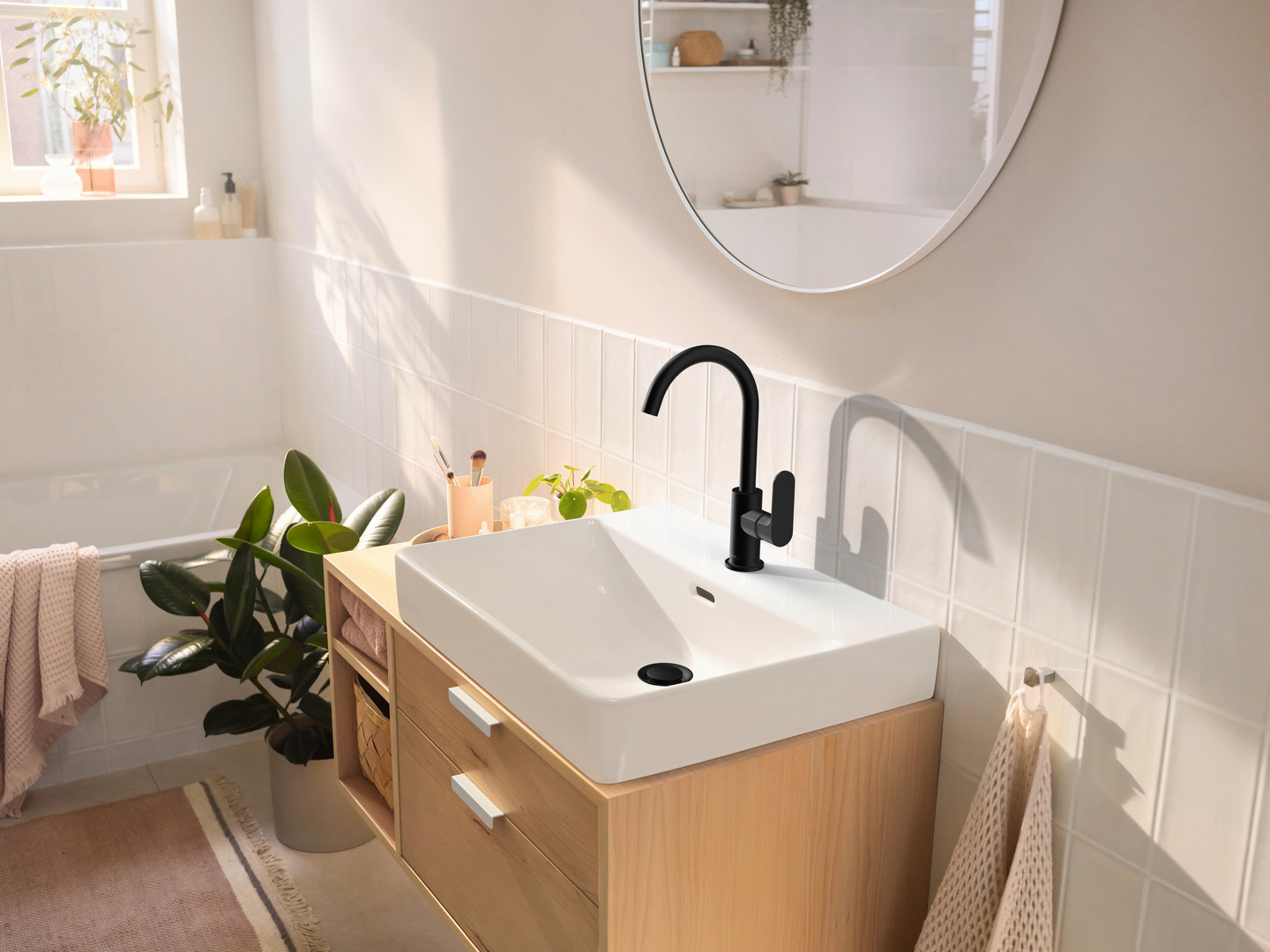 FORMAT Design 2.0 Waschtisch-Einhebelmischer 210, schwarz matt, Schwenkauslauf, mit Ablaufgarnitur 256725