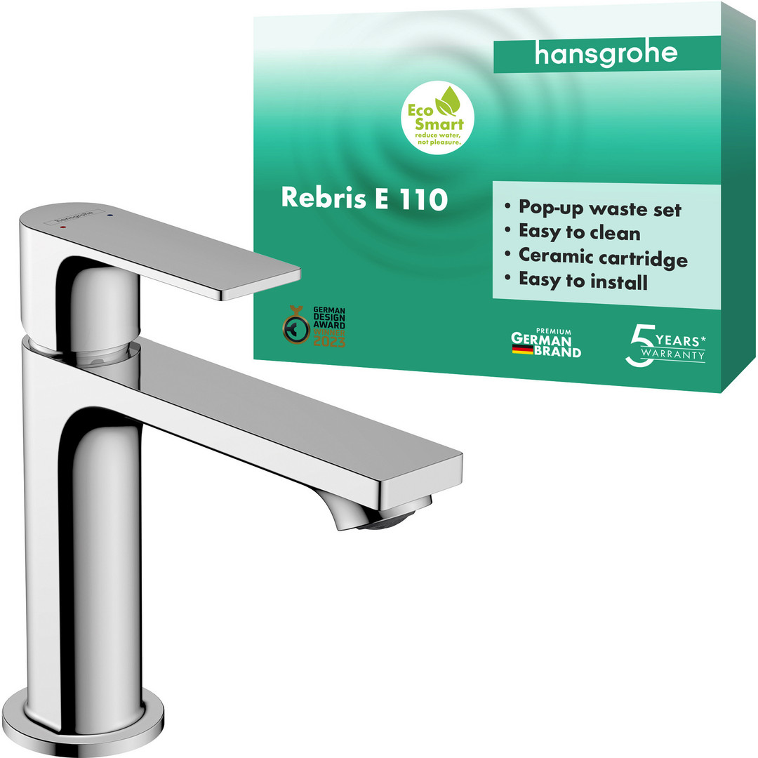 hansgrohe Waschtisch-Einhebelmischer Rebris E 110 mit Zugstangen-Ablaufgarnitur, chrom