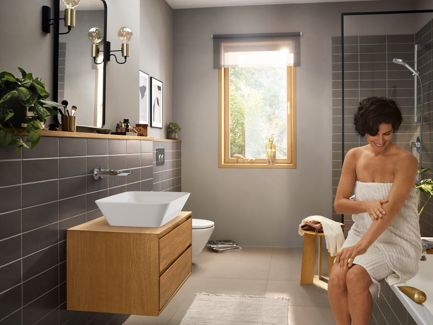 bestehend aus Einhebel-Waschtischmischer UP für Wandmontage, Ablaufgarnitur, Ausladung 200 mm, Normalstrahl, max. Durchflussmenge bei 3 bar 5 l/min, Keramikmischsystem, Temperaturbegrenzung einstellbar, für Durchlauferhitzer geeignet, unverschließbare Ablaufgarnitur, Ablaufventil Metall, Anschlussart Grundkörper, Anschlussgröße DN 15, Griff rechts oder links positionierbar, abhängig von der Installation des Grundkörpers, EcoSmart, AirPower Technologie