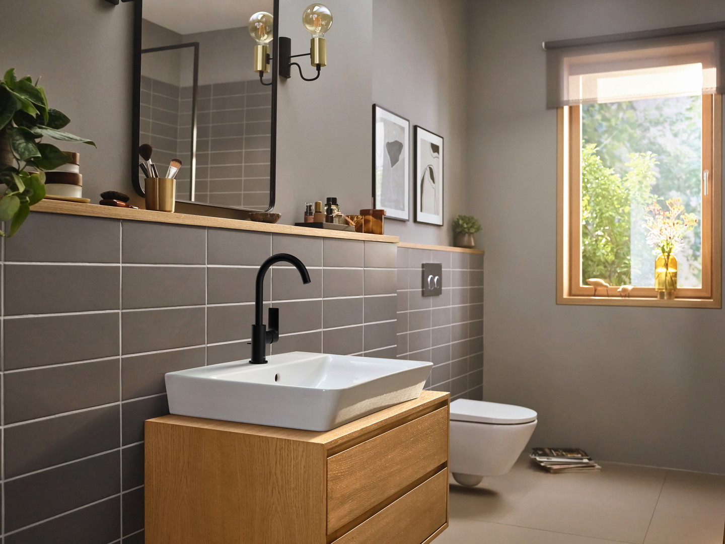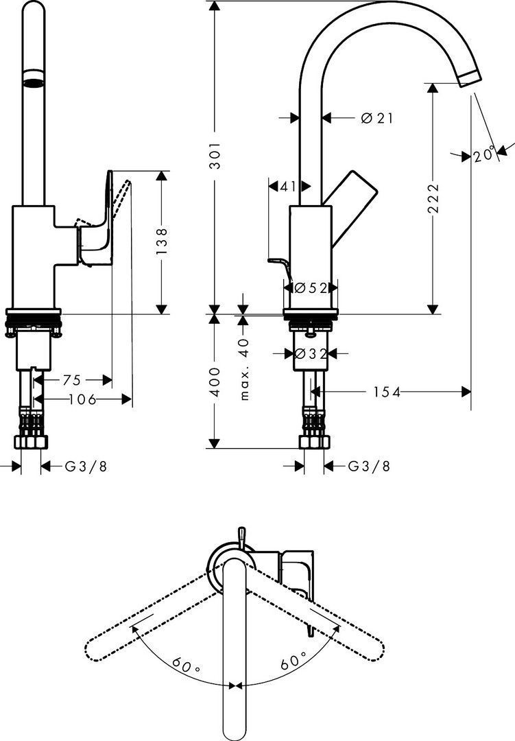 ComfortZone 210, Ausladung 154 mm, Auslaufhöhe 222 mm, Schwenkbereich 120°, Normalstrahl, max. Durchflussmenge bei 3 bar 5 l/min, Keramikmischsystem, Temperaturbegrenzung einstellbar, für Durchlauferhitzer geeignet, Zugstangen-Ablaufgarnitur G 1 1/4, Ablaufventil Synthetik, Anschlussart G 3/8 Anschlussschläuche, Anschlussgröße DN 15, EcoSmart, AirPower Technologie