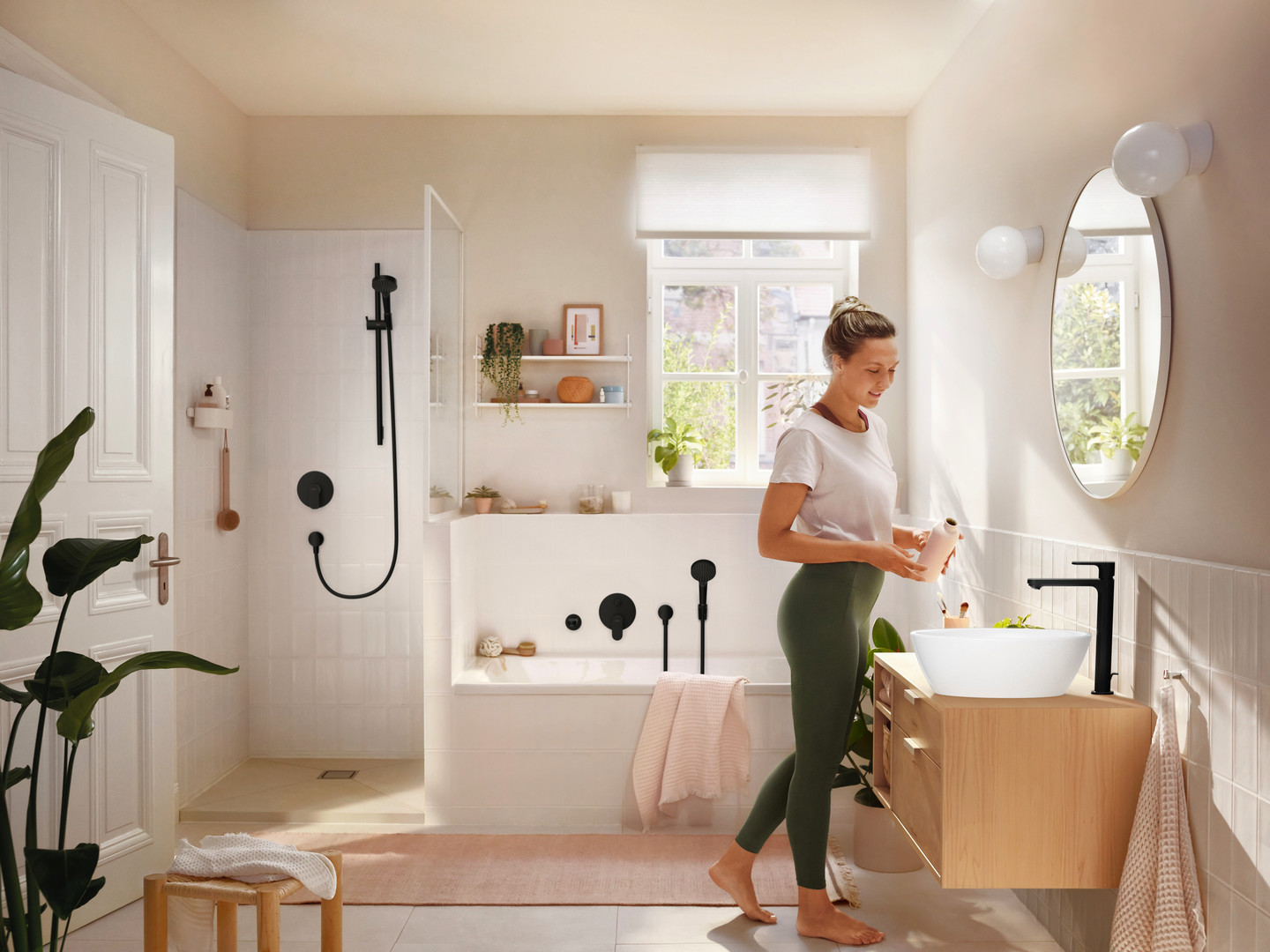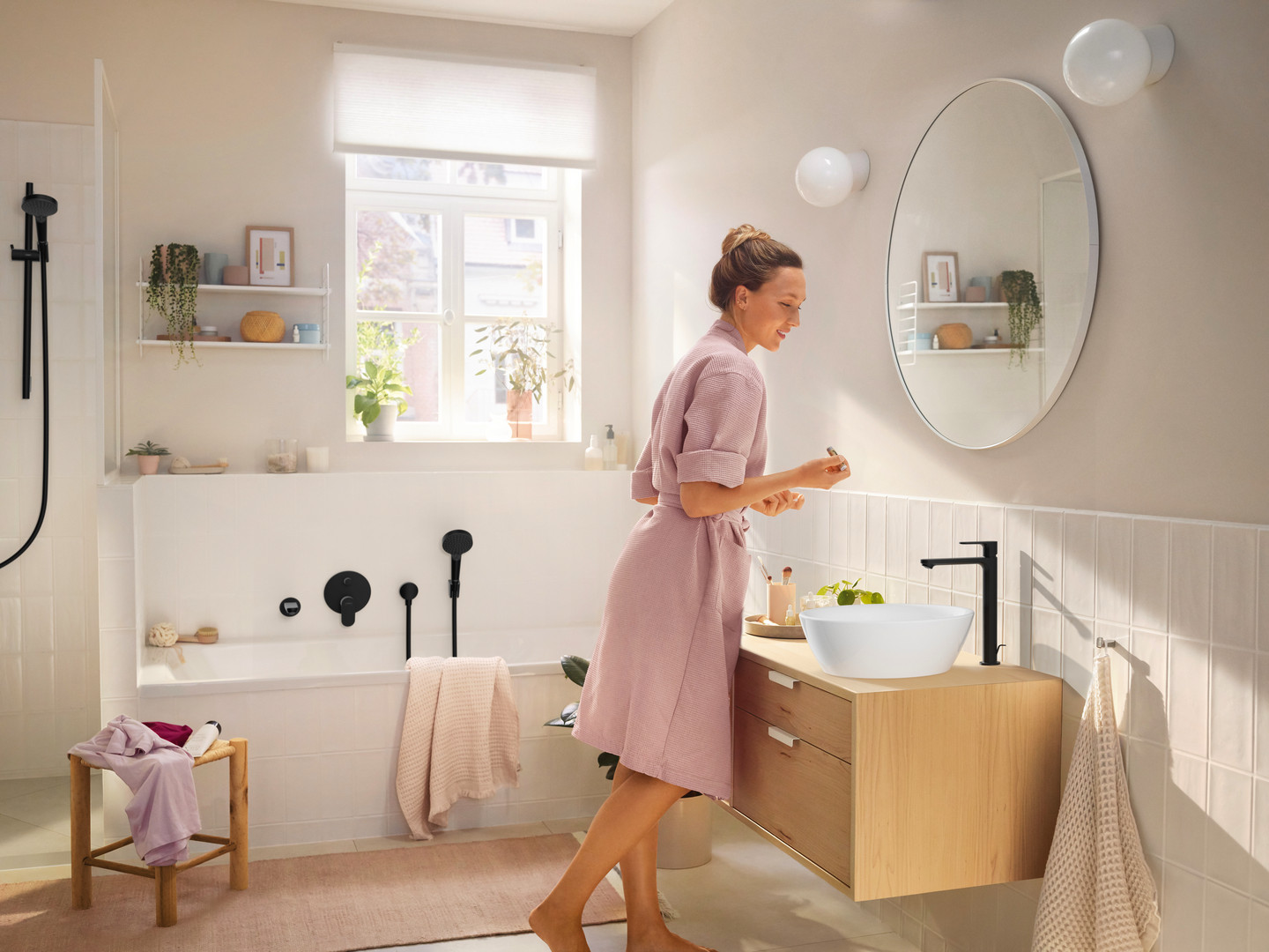 hansgrohe Waschtisch-Einhebelmischer Rebris S 240 CoolStart mit Zugstangen-Ablaufgarnitur, mattschwarz W302114