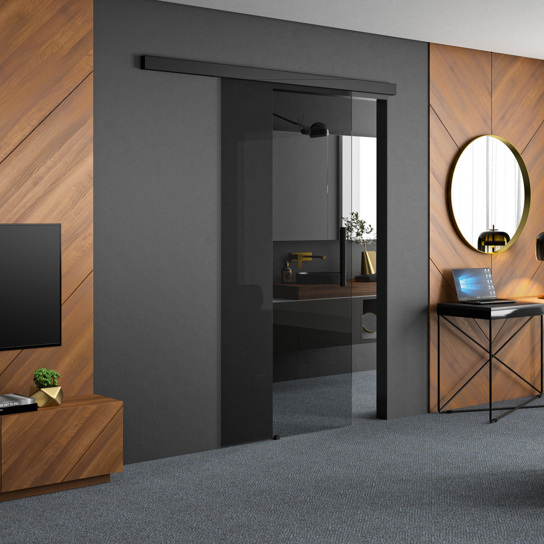 Palme Wohnschiebetür für Nischeneinbau XSlide 90,1-120 x 220 cm, links, ESG transparent, schwarz, 1-teilig