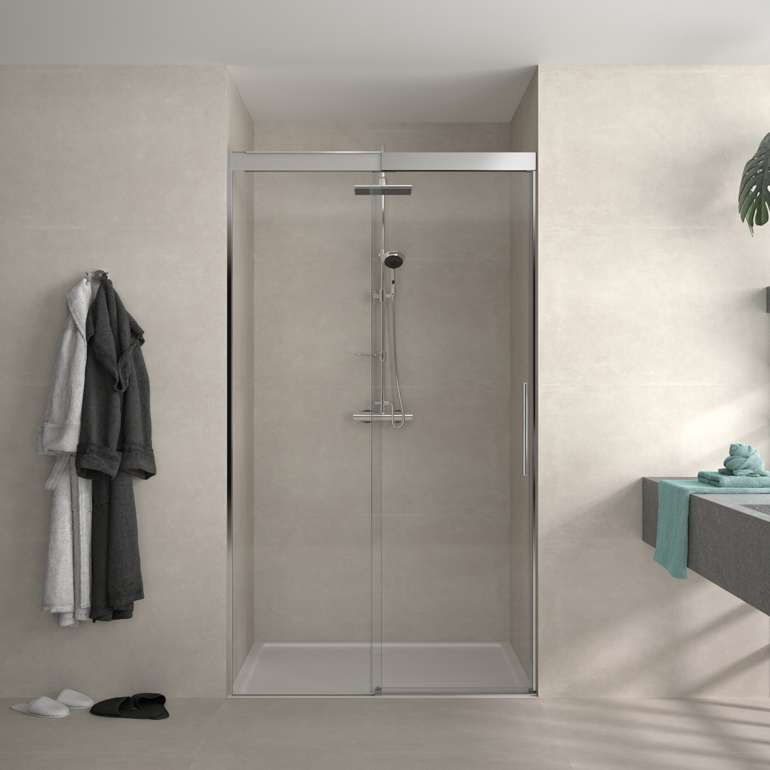 Palme Schiebetür XSlide Vario für Nischeneinbau 126 x 210 cm, links, ESG transparent, cenit-chrom, 2-teilig
