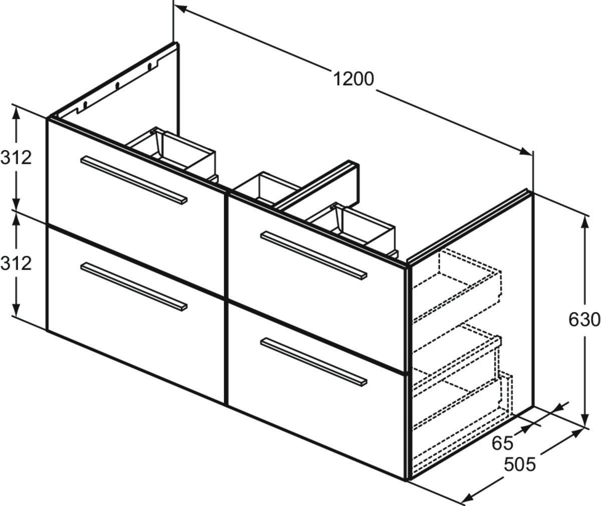 Ideal-Standard Möbeldoppelwaschtisch-Unterschrank i.life B 120x50,5x63cm, 4 Auszüge, weiß matt W449086