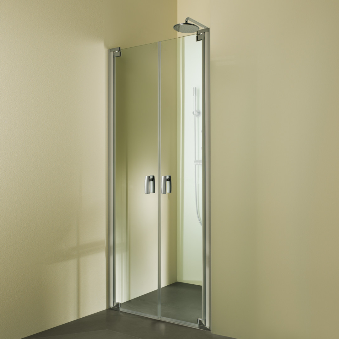 Palme Pendeltür 2-tlg. für Nische Valletta XO 70 x 200 cm, ESG transparent, alusilber W279240