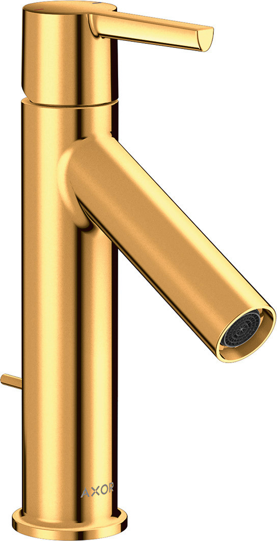 hansgrohe Waschtisch-Einhebelmischer 100 Axor Starck Ausladung 103mm, mit Hebelgriff, Zugstangen-Ablaufgarnitur, polished gold optic