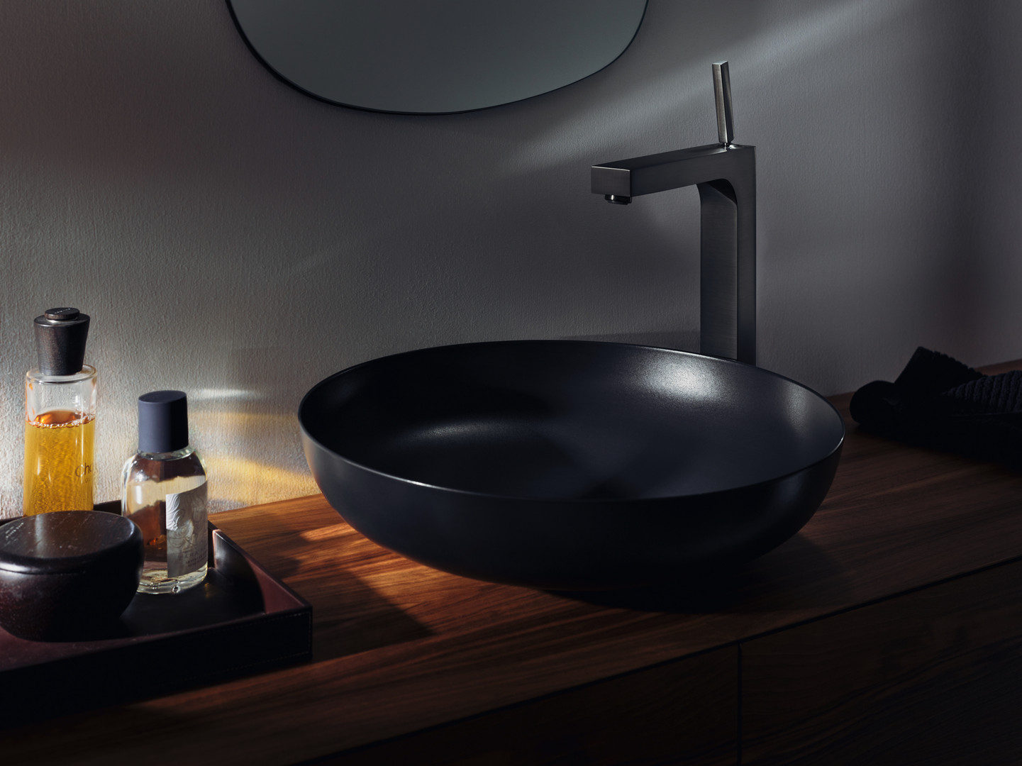 hansgrohe Waschtisch-Einhebelmischer Axor Citterio 280 Ausladung 201mm, mit Pin-Griff, Zugstangen-Ablaufgarnitur, brushed black chrome