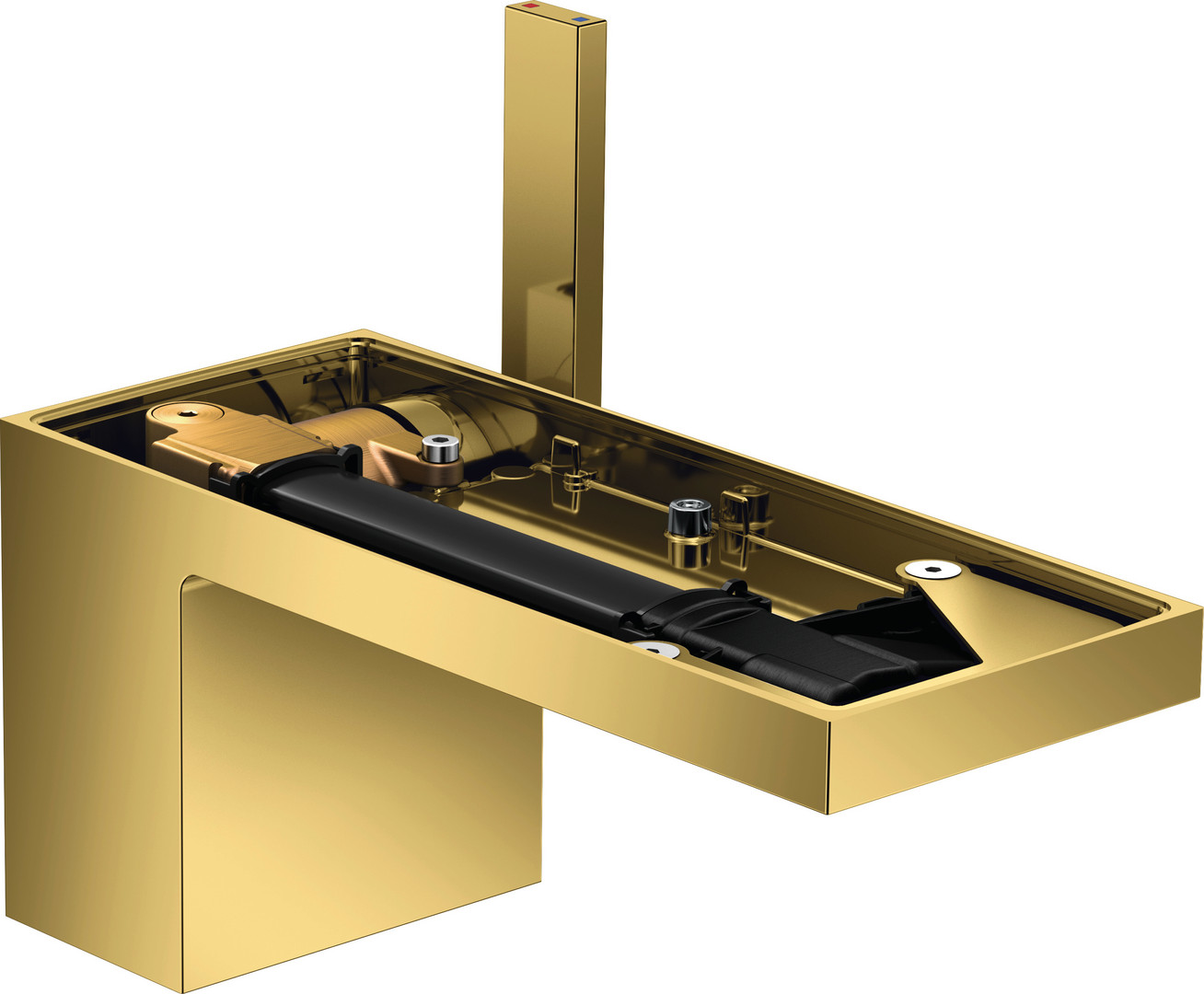 hansgrohe Waschtisch-Einhebelmischer 70 Axor MyEdition Ausladung 151mm, mit Push-Open-Ablaufgarnitur, ohne Platte, polished gold optic