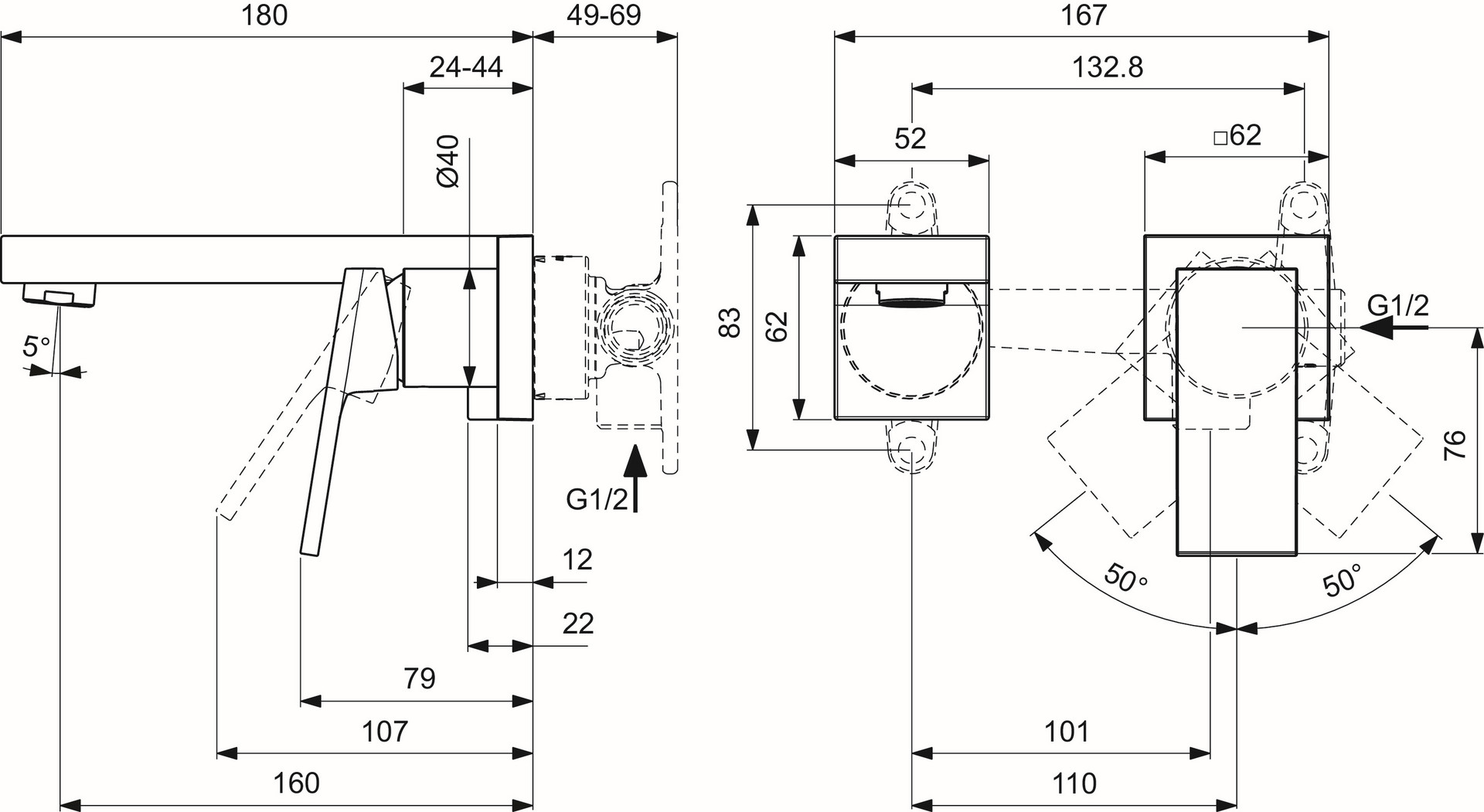 Ideal-Standard Wand-Waschtisch-Einhebelmischer Extra UP Bausatz 2, verchromt W317681