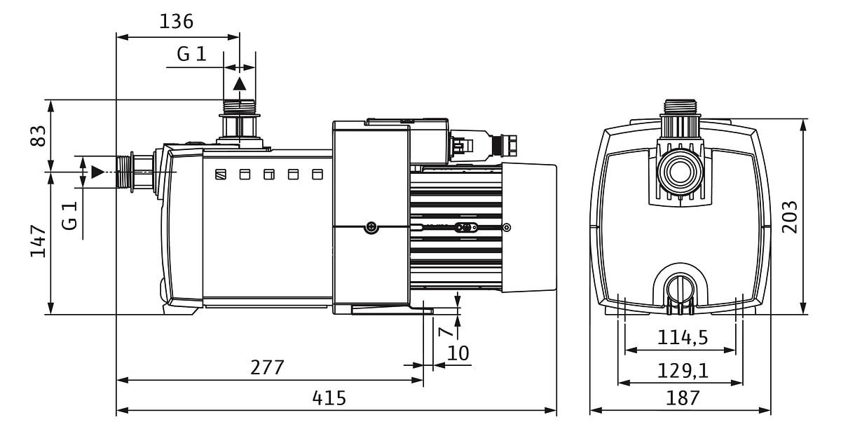 mehrstufig, normalansaugend, zur Wasserversorgung (Trinkwasserzulassungen nach ACS), Beregnung, Bewässerung und Berieselung, Regenwassernutzung, bestehend aus Pumpe, 2 Stück Kunststoffverbinder mit Dichtungen für den manuellen Anschluss an die Rohre, Wilo-Connector (elektrischer Schnellverbinder), Einbau- und Betriebsanleitung, Ausführung S1 Gleitringdichtung für WRAS-Zulassung