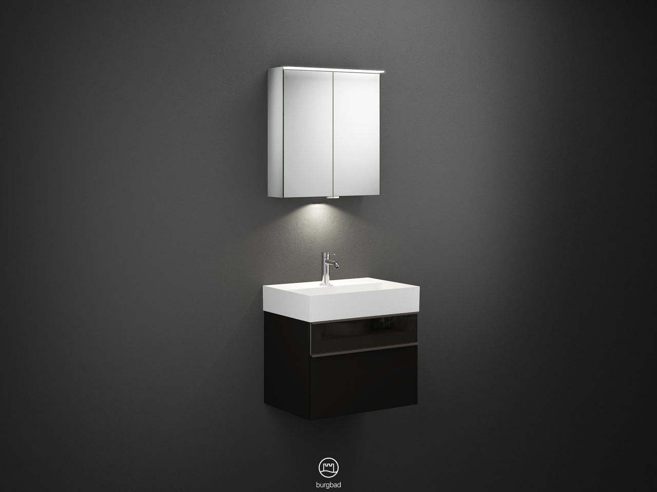 Burgbad LED Waschtisch-Kombination Yumo 66,5x48x47cm, mit Spiegelschrank, LED-Waschtischbeleuchtung, Acryl