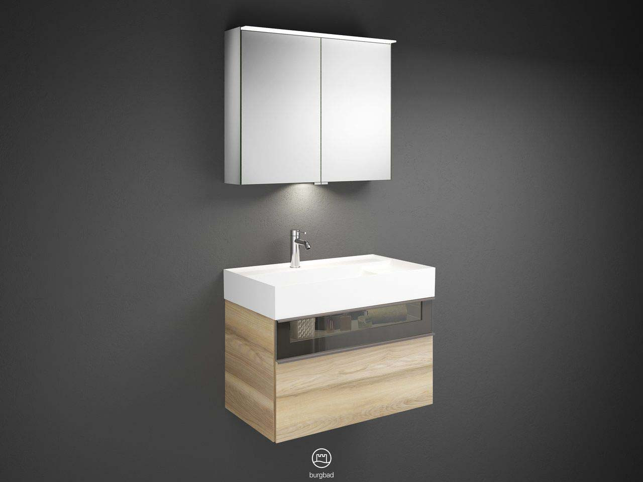 Burgbad LED Waschtisch-Kombination Yumo 81,5x48x47cm, mit Spiegelschrank, LED-Waschtischbeleuchtung, Melamin