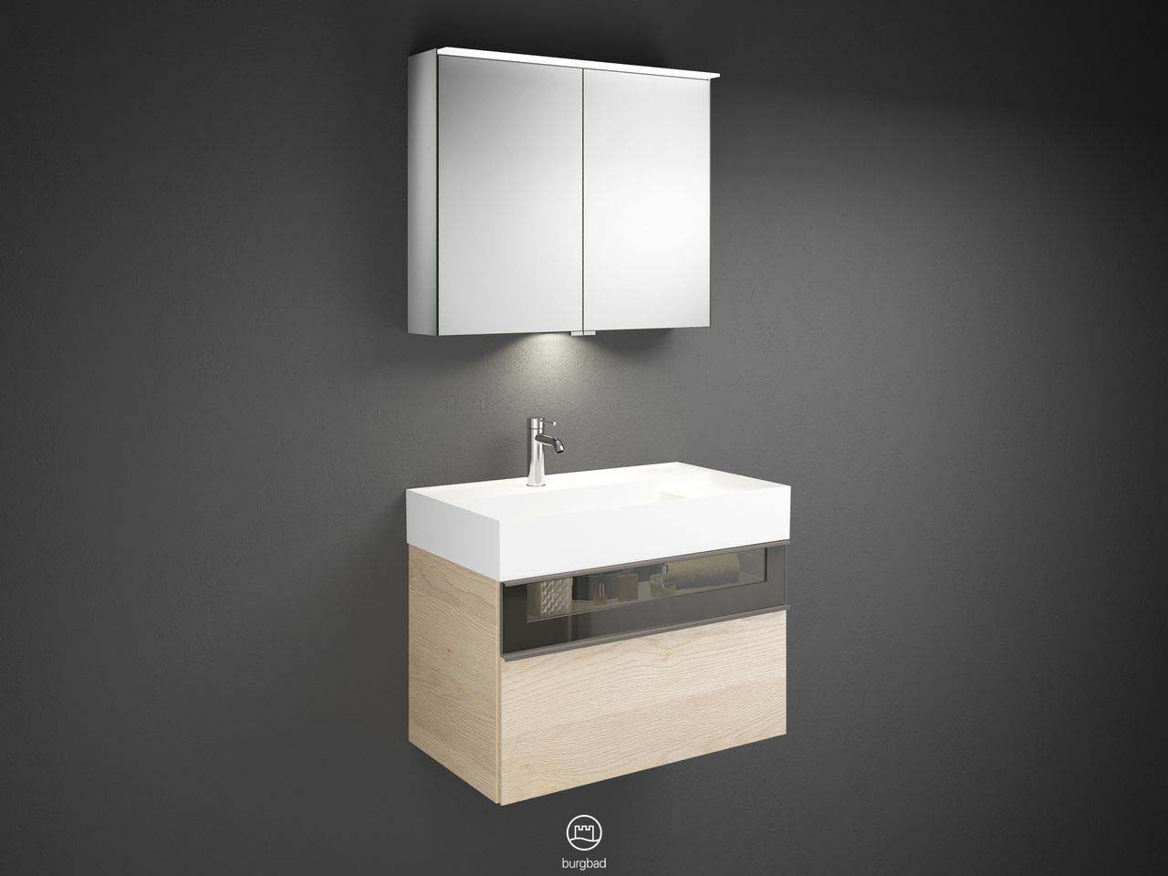 Burgbad LED Waschtisch-Kombination Yumo 81,5x48x47cm, mit Spiegelschrank, LED-Waschtischbeleuchtung, Acryl W507811