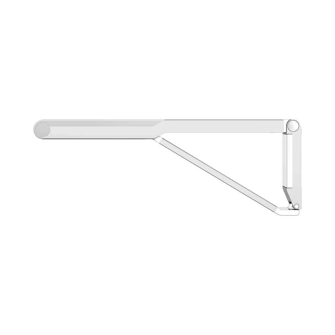 Belastbarkeit 115 kg, nach oben klappbar, Bremse sichert vor unbeabsichtigter Absenkung, Auflagefläche Kunststoff, verdeckte Befestigung, zum Schrauben, Befestigungs-Sets (2x je nach Ankergrund/Mauerwerk) sind separat zu bestellen