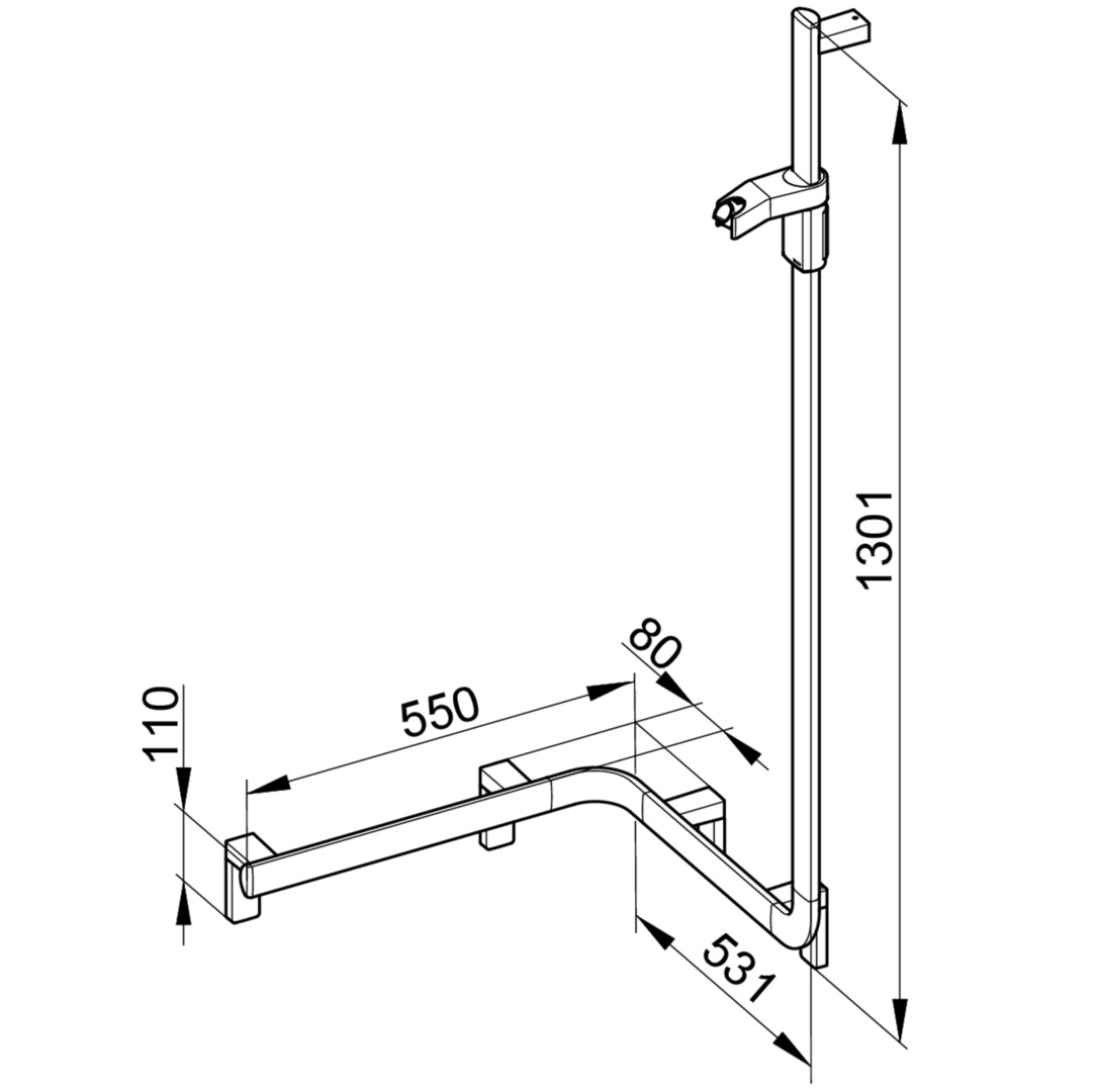 KEUCO Duschhandlauf AXESS verchromt, 550 mm, mit Brausestange, rechte Ausführung W340925