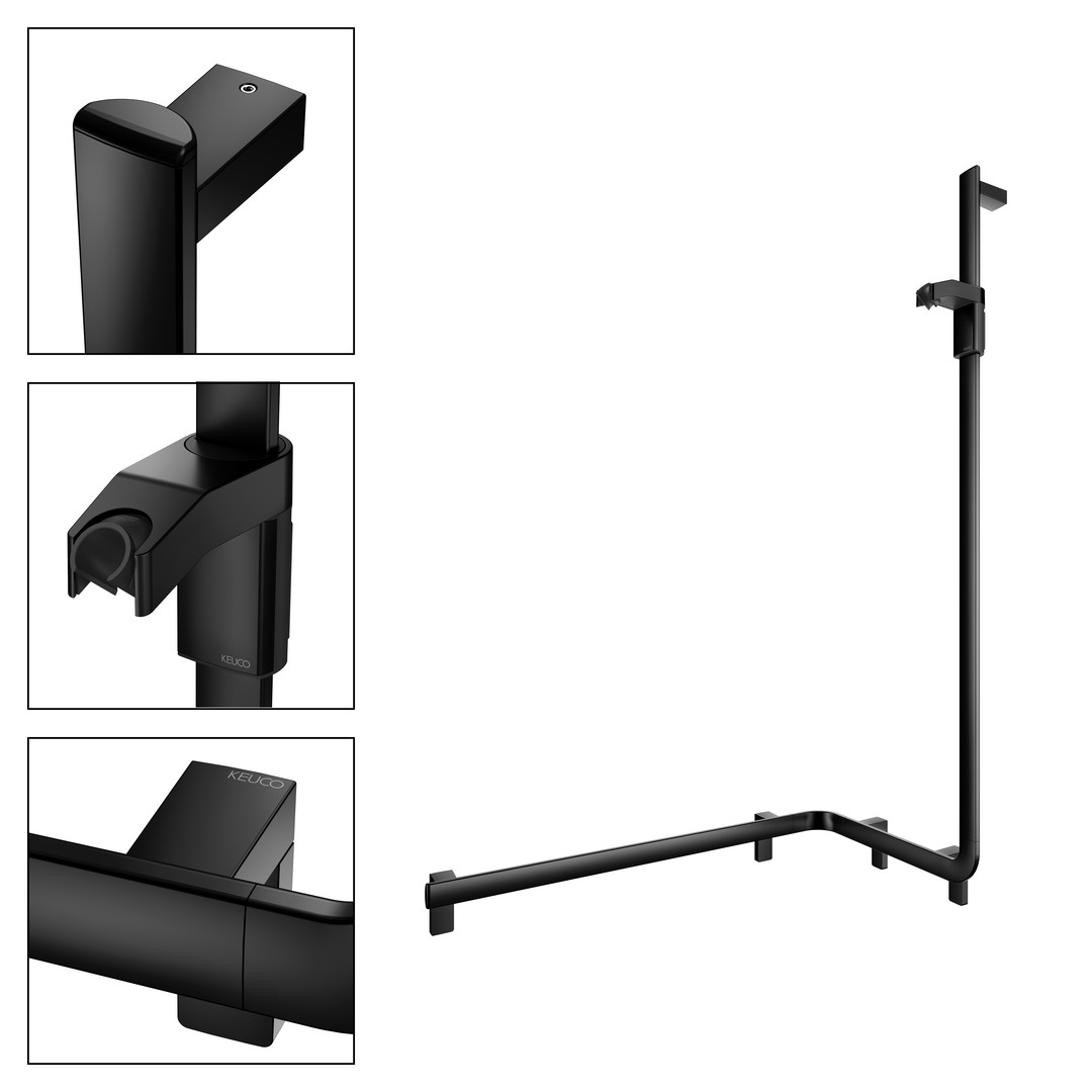 KEUCO Duschhandlauf AXESS schwarz matt, 850 mm, mit Brausestange, rechte Ausführung