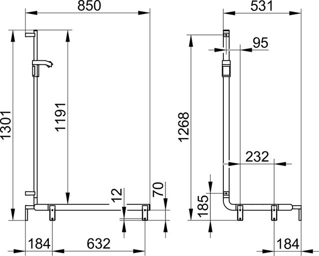 mit Brauseschieber, Breite 581 mm, Belastbarkeit 115 kg, mit 2x Befestigungsset Nr. 1