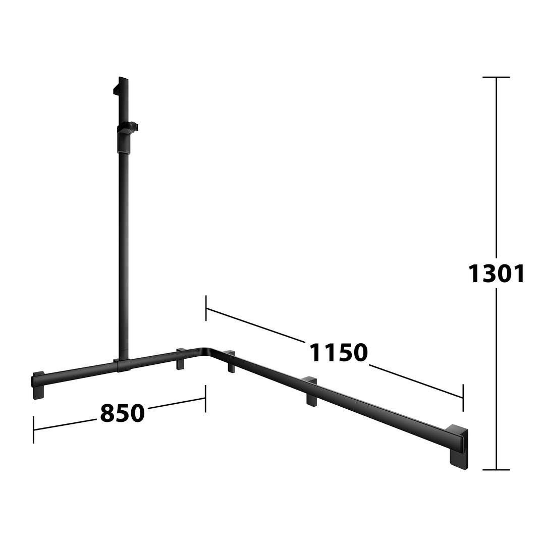KEUCO Duschhandlauf AXESS schwarz matt, 850/850 mm, mit Brausestange, linke Ausführung W340974