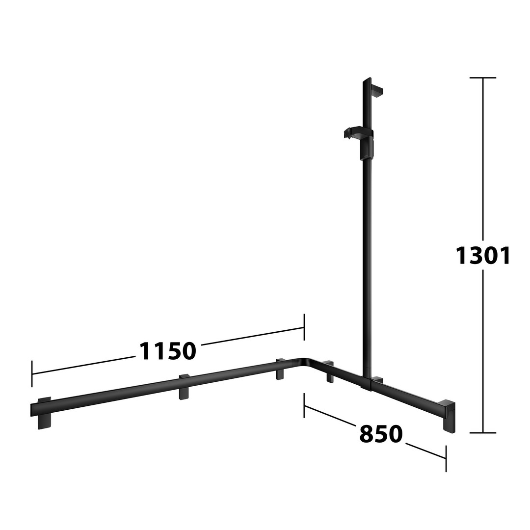 KEUCO Duschhandlauf AXESS schwarz matt, 850/1150 mm, mit Brausestange, rechte Ausführung