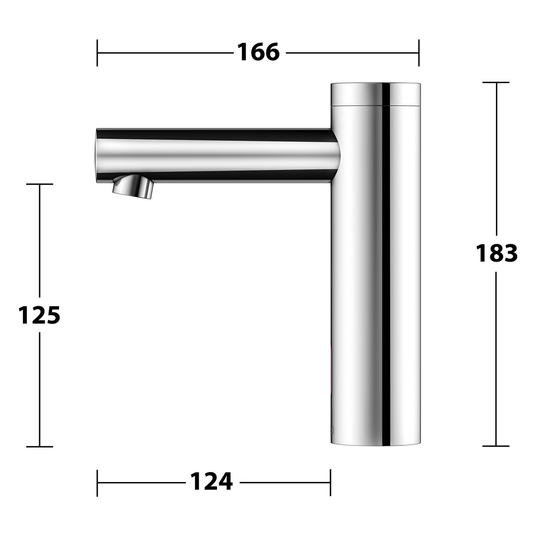 ohne Ablaufgarnitur, Auslaufhöhe 125 mm, Einlochmontage mit Schnell-Montage-System, Anschlussart Anschlussschläuche G 3/8, Infrarot-Sensorik (Reichweite einstellbar, Nachlaufzeit einstellbar), manueller Wasserstop zur Reinigung, Spannung 6 V, Eingangsbereich 100-240 V, Luftsprudler M20x1, Durchflussmenge begrenzt auf 5 l/min, für Durchlauferhitzer geeignet