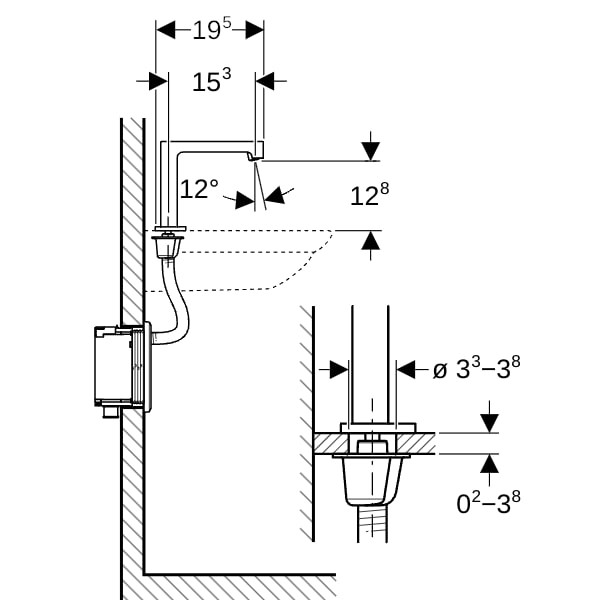 | Aufbauhöhe Unterkante Hahnauslass | 128 mm |