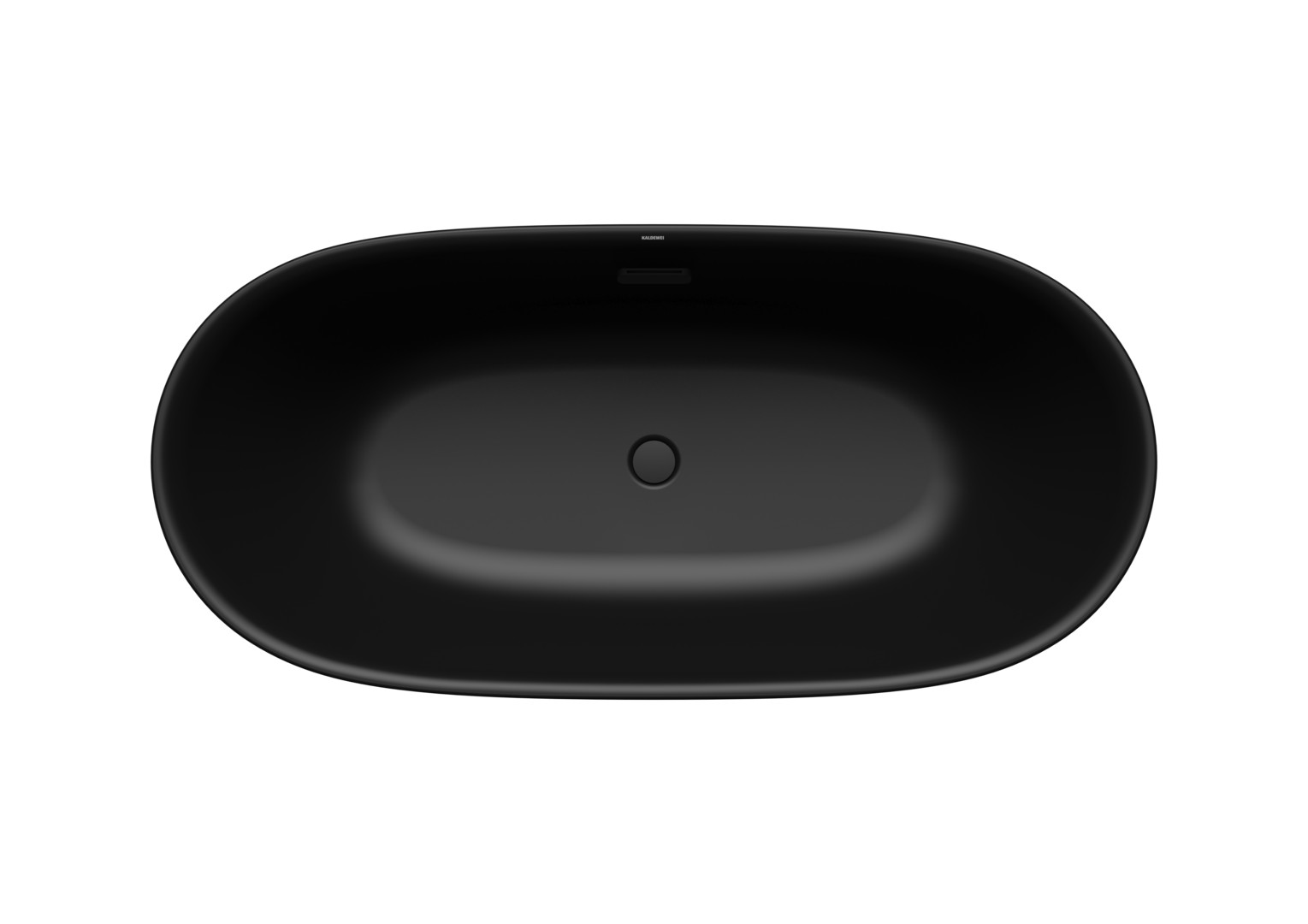 freistehende Badewanne komplett aus Stahl-Emaille gefertigt mit mittig positioniertem Kunststoffablaufdeckel, Ablaufloch Ø 52 mm, bestehend aus: klick-klack Kunststoffablauf und Design-Überlauf und Badewannen-Antidröhn-Set