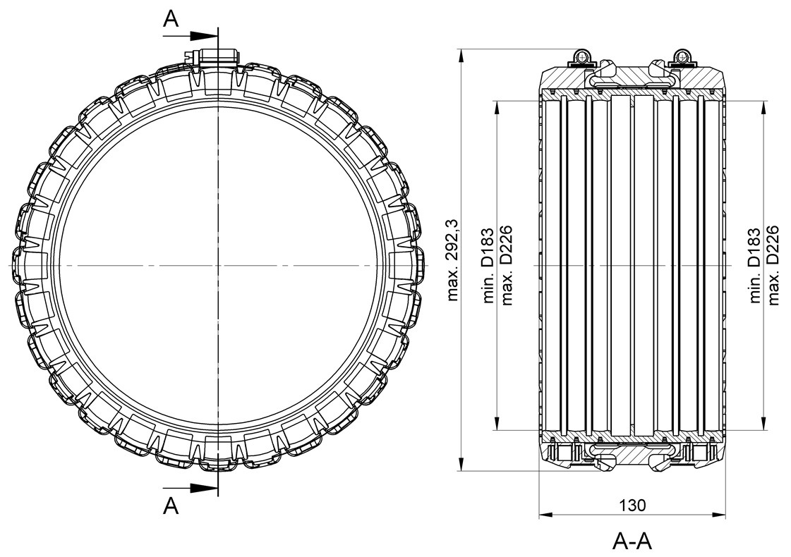 ATEC Kraftschluss-Manschette Spannbereich 183-226 mm, 130 mm, bis 120 Grad