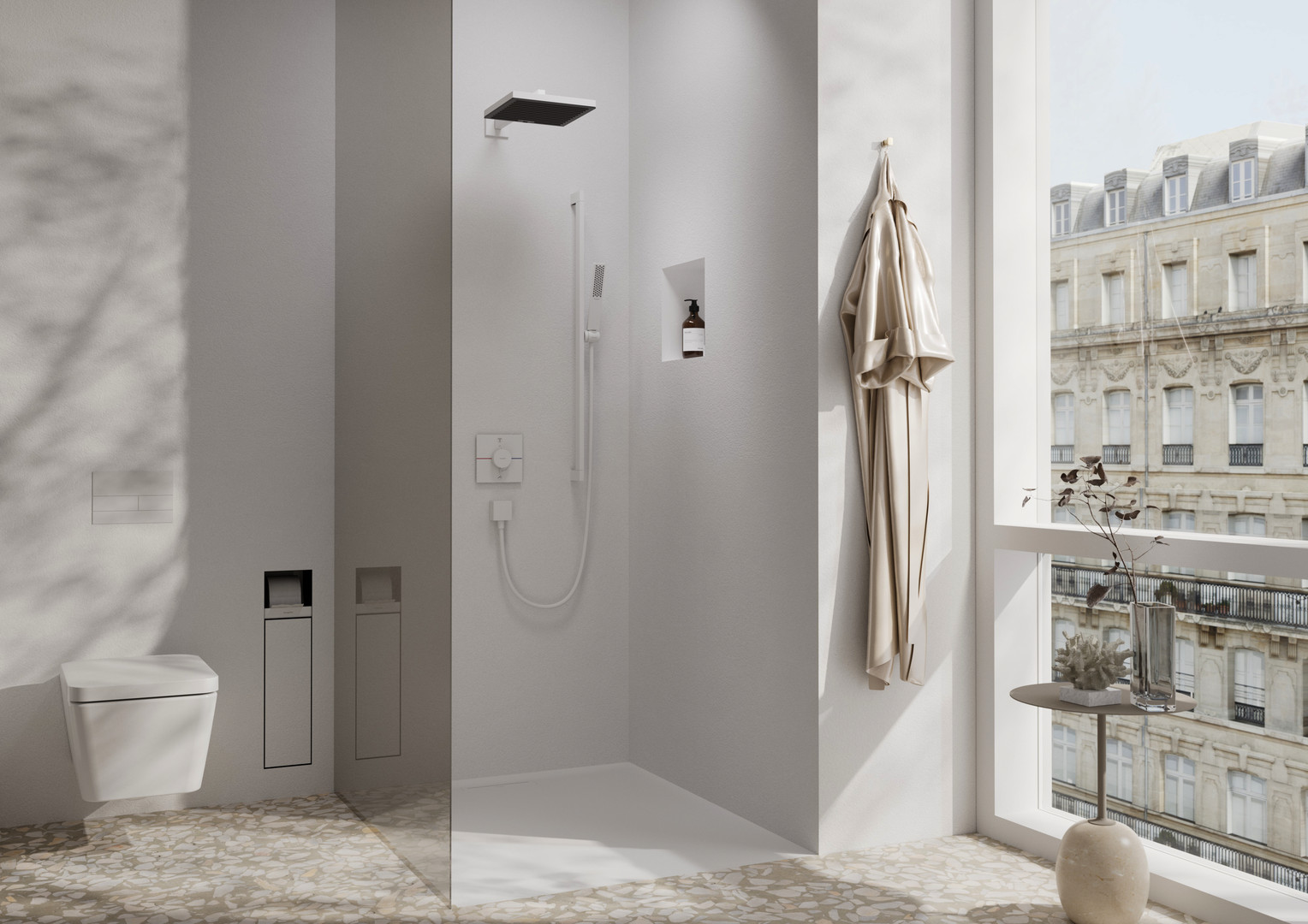 hansgrohe Einbau-Toilettenbürstenhalter XtraStoris mit Papierhalter, befliesbarer Tür, mattweiß