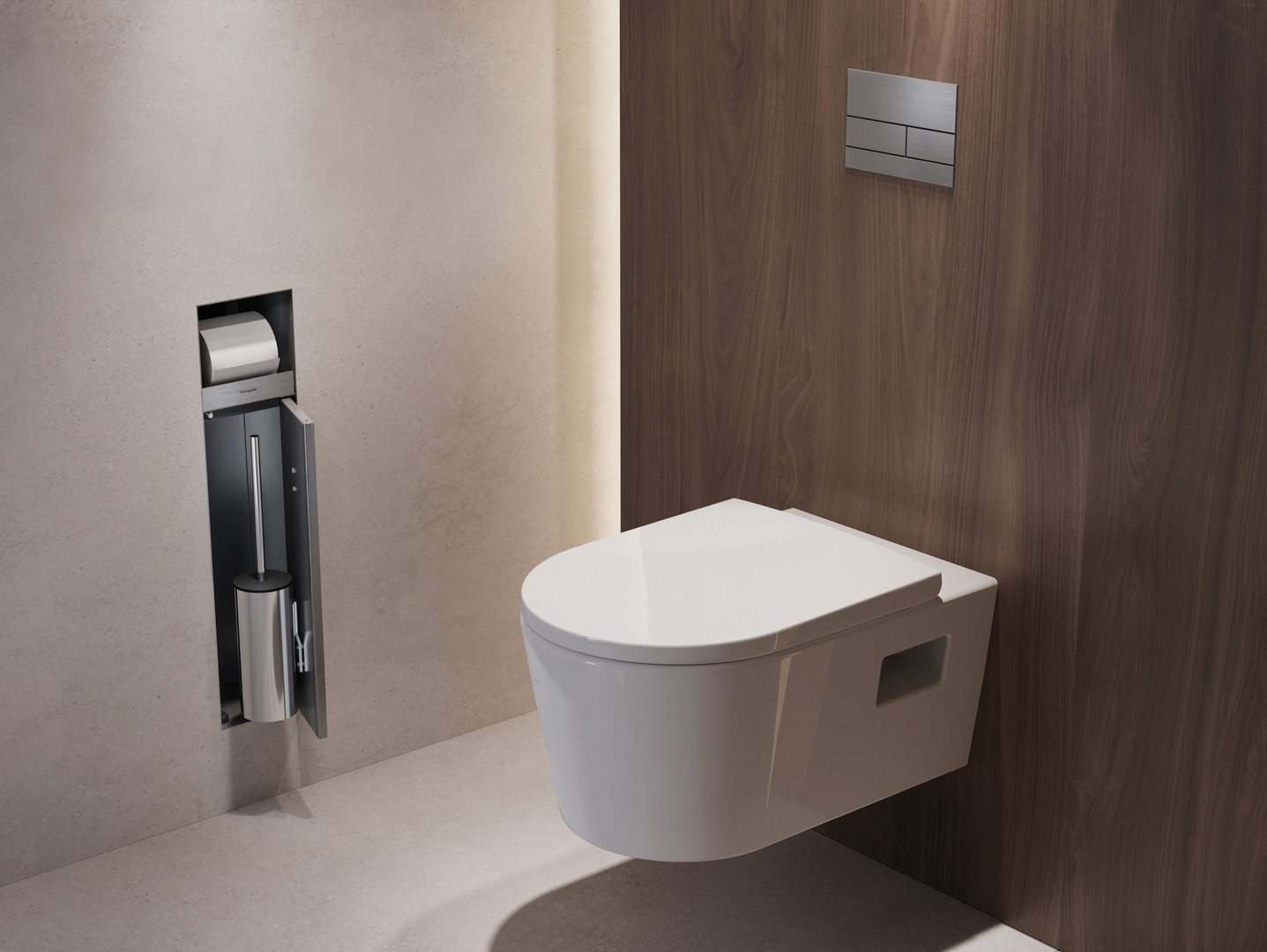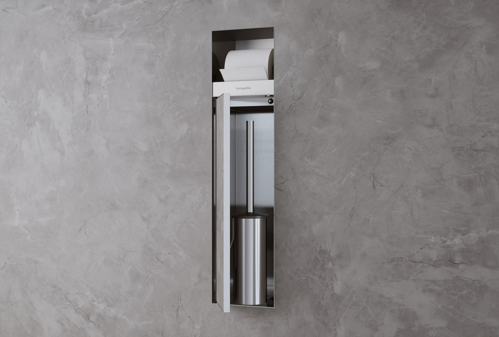 hansgrohe Einbau-Toilettenbürstenhalter XtraStoris mit Papierhalter, befliesbarer Tür, Edelstahl gebürstet W358175