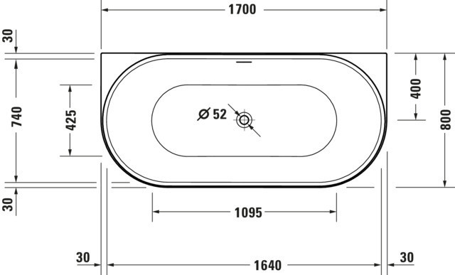 Duravit Badewanne oval DuraSenja 170x80x58,5cm, weiß, Vorwand, RS 2, mit FG+AÜL