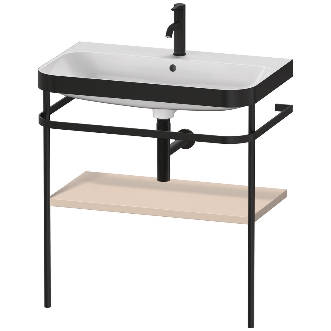 Duravit Möbelwaschtisch-Kombination Happy D.2 Plus 77,5 x 49 cm, 1 Hahnloch, taupe supermatt, mit Metallkonsole