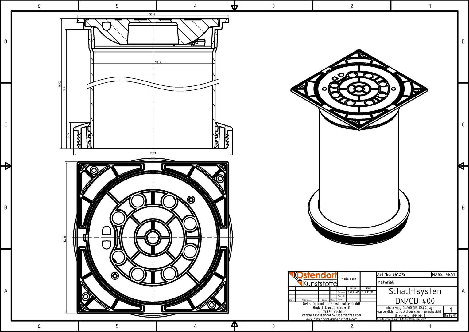 Ostendorf Teleskopabdeckung DN/OD 315, 40 t, tagwasserdicht, mit Dichtmanschette, blau