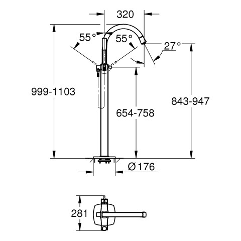 GROHE Fertigmontageset Grandera UP-Wannen-Einhebelmischer, 1/2", Bodenmontage, chrom W294391