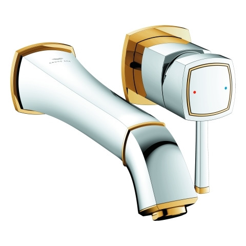 GROHE Fertigmontageset Grandera Waschtisch-2-Loch-Wandarmatur, Ausladung 23,4cm, chrom/gold W294343