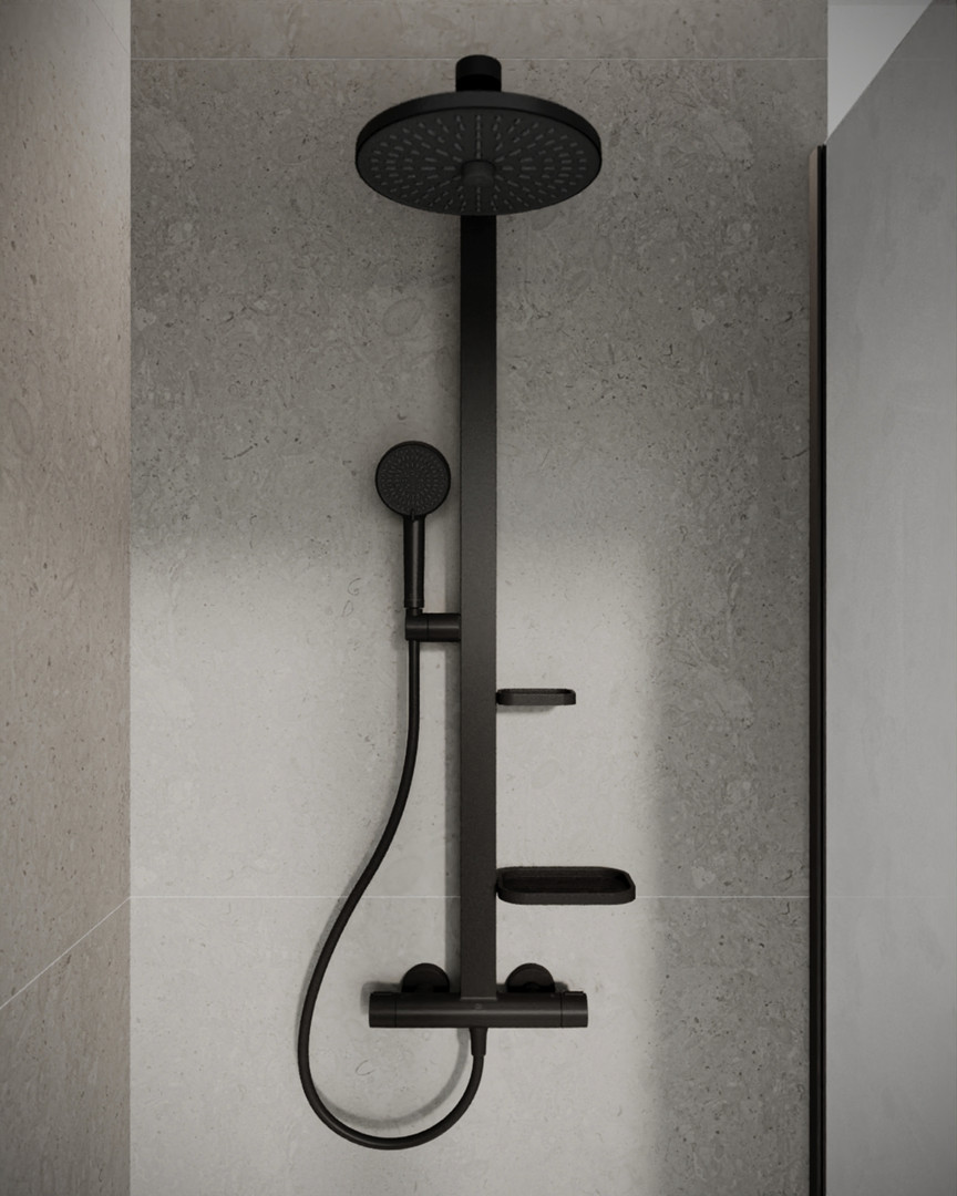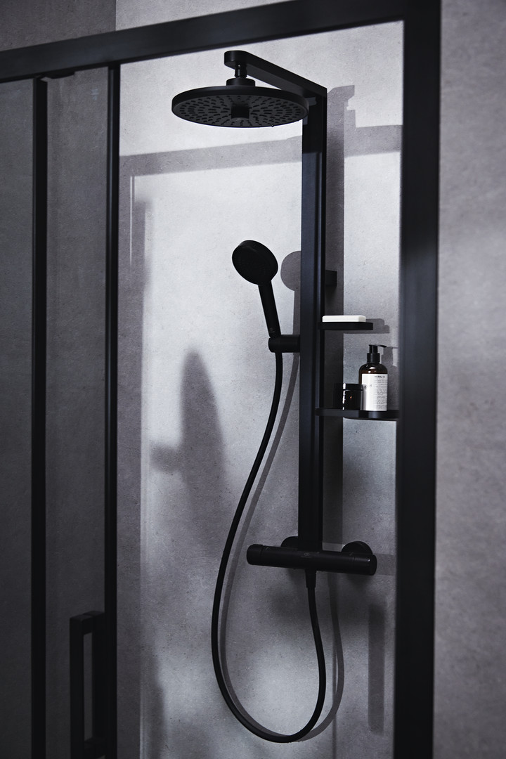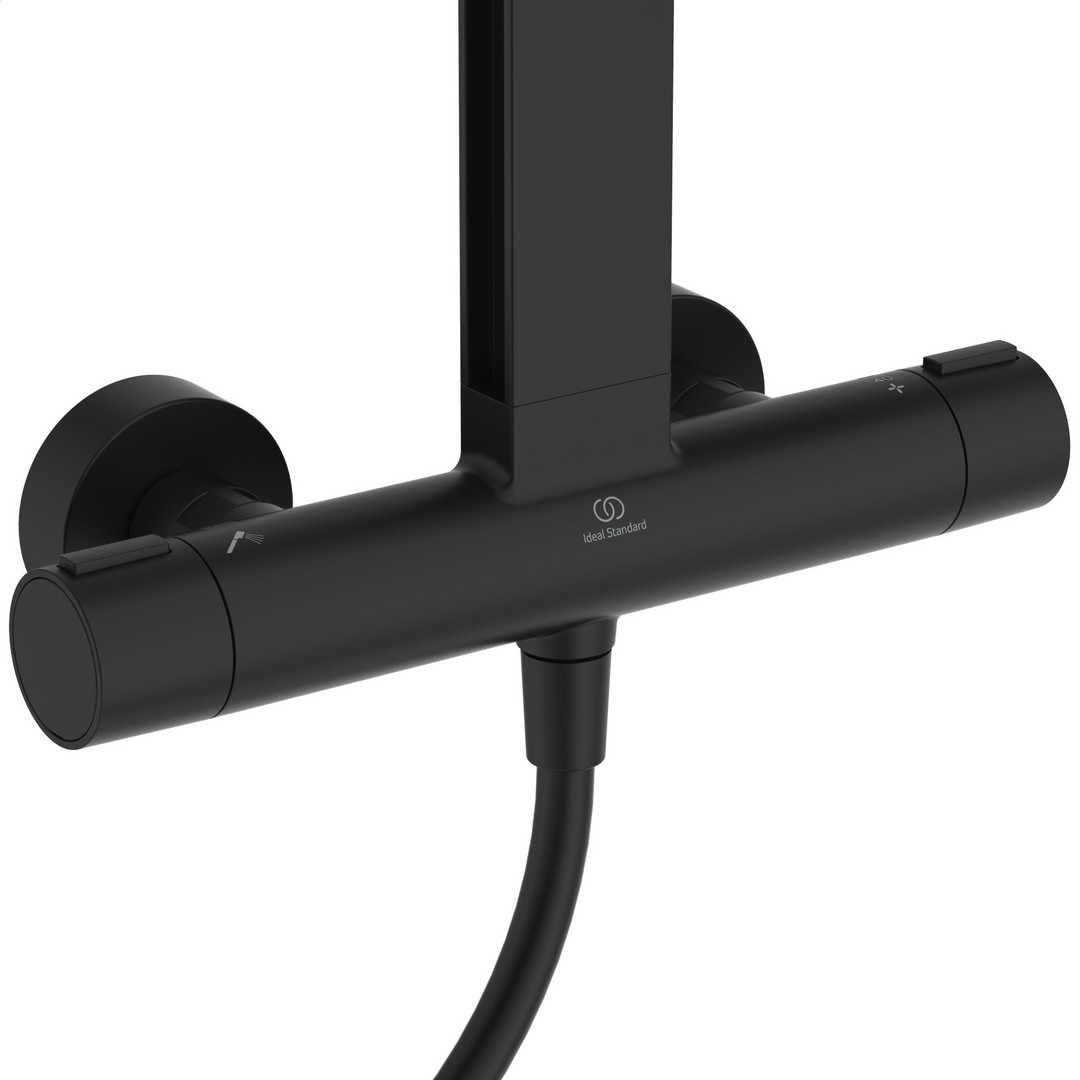 Ideal-Standard Duschsystem Alu+ Ceratherm mit Brausethermostat, 2 Ablagen, Kopfbrause rund, silk black