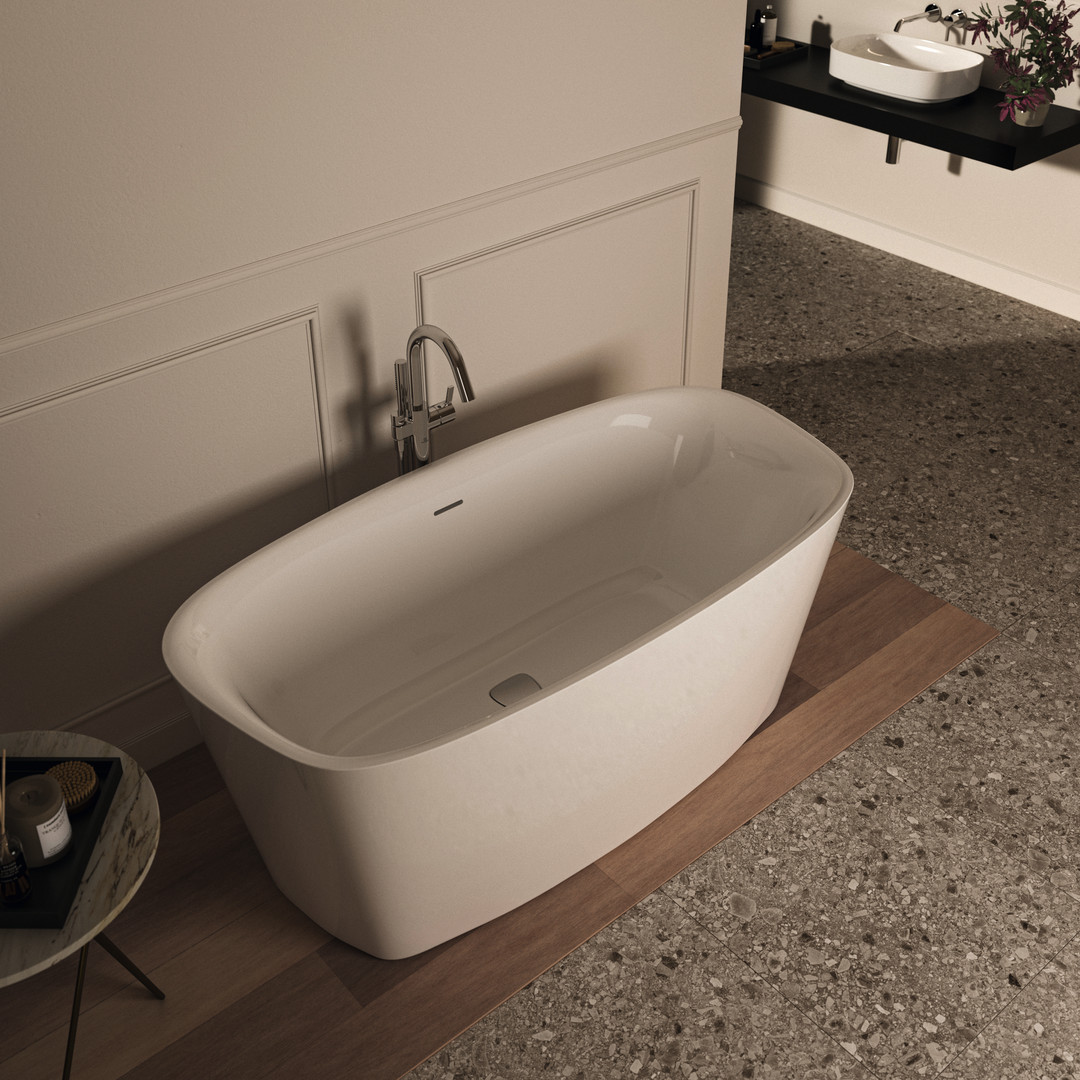 Ideal-Standard Freistehbadewanne Dea 150 x 75 x 61 cm, weiß (Alpin), Ab-/Überlaufgarnitur in chrom