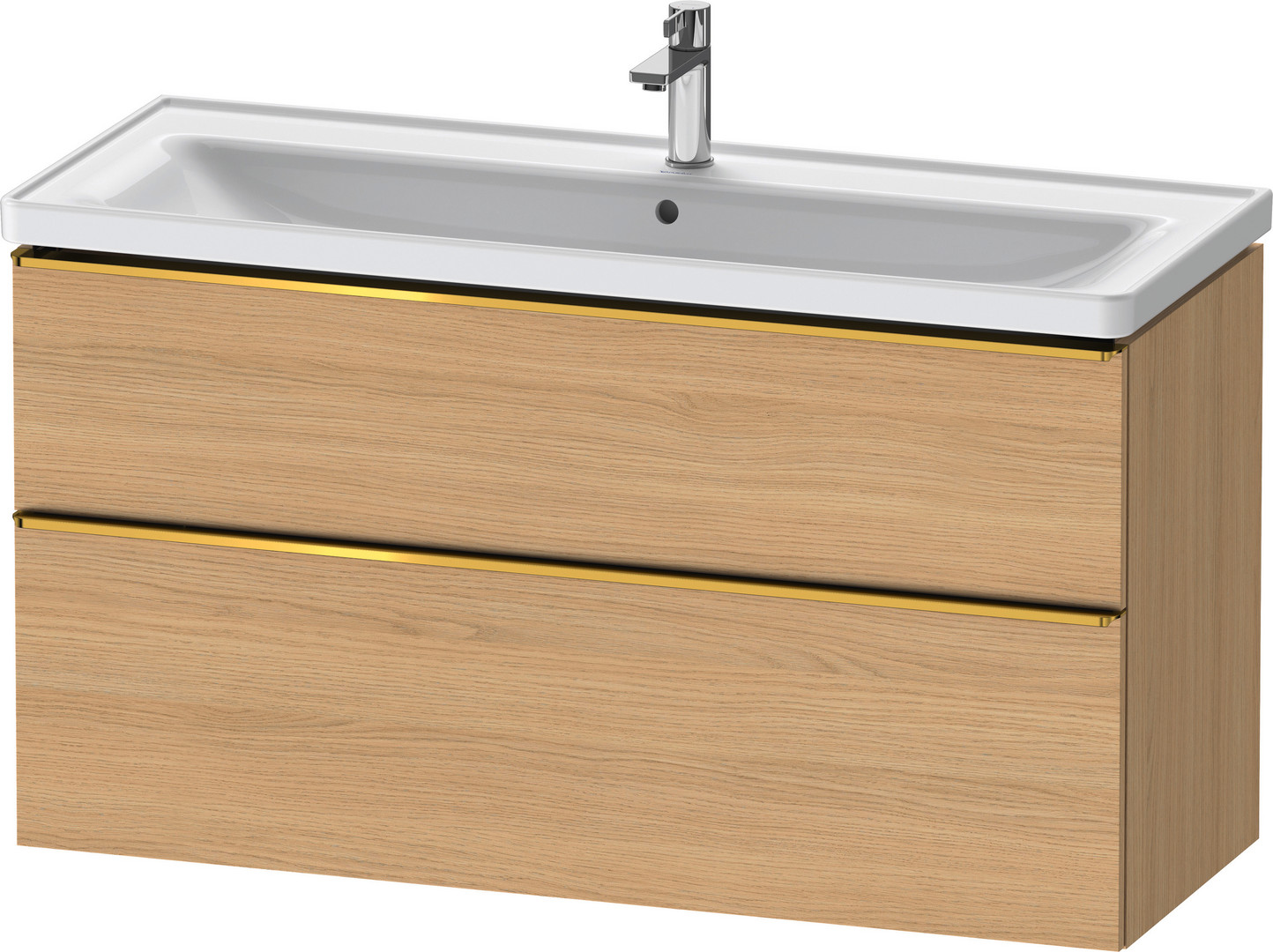Duravit Waschtisch-Unterschrank D-Neo 118,4x45,2x62,5cm, 2 Auszüge, wandhängend, Gold poliert/Eiche Natur