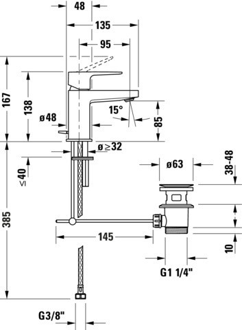 Duravit Waschtisch-Einhebelmischer S Manhattan Ausladung 95mm, mit Zugstangen-Ablaufgarnitur, chrom W336465
