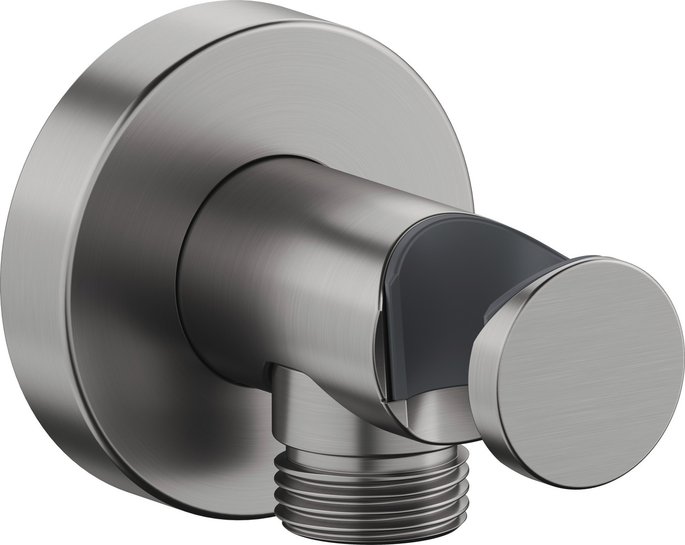 Duravit Wandanschlussbogen DN 15, mit Brausehalter, Rosette rund, Edelstahl gebürstet