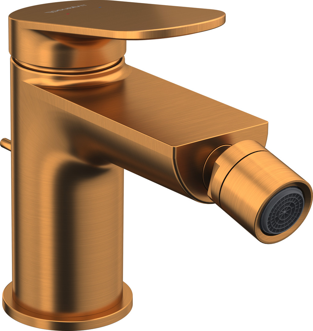 Duravit Bidet-Einhebelmischer Wave Ausladung 128mm, mit Zugstange Ablaufgarnitur, Bronze gebürstet