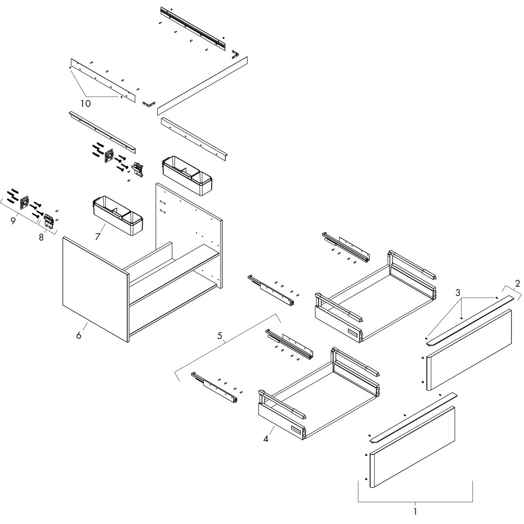 Korpus: MDF, Oberfläche Korpus: Thermofolie, Front: MDF, Oberfläche Front: Thermofolie, MoistureProof, mit Griffleiste, Vollauszug, Griffe: Aluminium, Oberfläche Griffe: Pulverlack, SoftClose, ohne Siphonausschnitt, Inneneinteilung, Basis-Boxen-Set, Schattenfugenprofil vorgerichtet für Montage von Handtuchhalter und Ablage, Wandmontage, vormontiert, mit Befestigungsmaterial