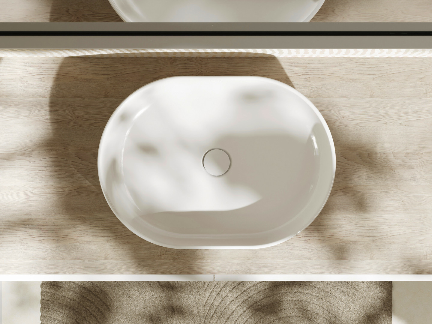 hansgrohe Konsole Xelu Q 1360 x 550 mm, Ausschnitt rechts, Aufsatzwaschtisch mit Hahnloch, weiß hochglanz W494461