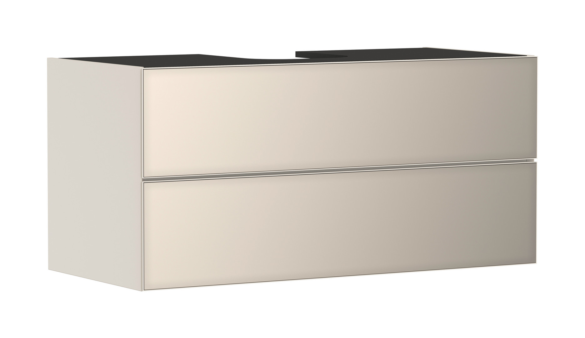 für Konsolen mit Aufsatzwaschtisch geschliffen, Korpus: MDF, Oberfläche Korpus: Lack, Frontrahmen: Aluminium, Oberfläche Frontrahmen: Pulverlack, SmoothSurface, AntiFingerprint, Moisture Proof, grifflos, PushOpen-Funktion, Vollauszug, ohne Siphonausschnitt, SoftClose, Inneneinteilung, mit Basis Boxen Set, mit Raumsparsiphon Sperrwasserhöhe 50 mm, Wandmontage, vormontiert, mit Befestigungsmaterial, Wechseln der Fronten möglich