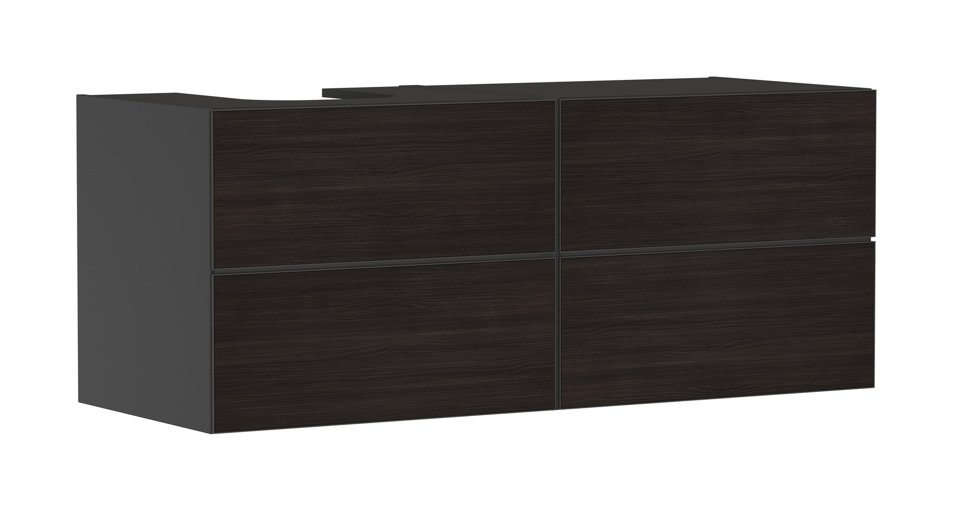 hansgrohe Waschtischunterschrank Xevolos E 1370x555x550mm, 4 Schubladen, links, schiefergrau matt, Eiche dunkel