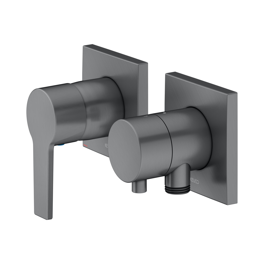 KEUCO Fertigmontageset Edition 11 UP-Einhebelmischer, mit Schlauchanschluss, Brausehalter, für 2 Verbraucher, schwarzchrom gebürstet