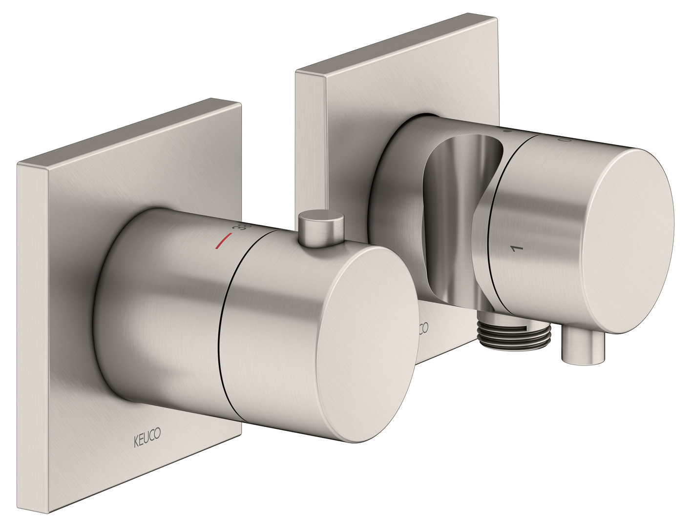 KEUCO Fertigmontageset Edition 11 UP-Thermostatarmatur, mit Schlauchanschluss, Brausehalter, für 2 Verbraucher, nickel gebürstet