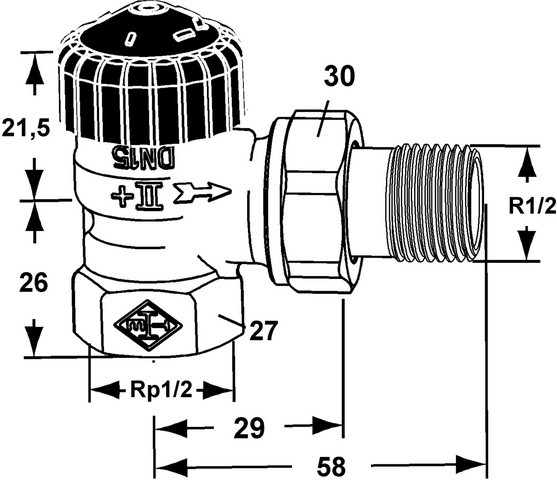 Standard-Thermostat-Ventilunterteile ohne Voreinstellung, werden in Zweirohr-Pumpenheizungsanlagen mit normaler Temperaturspreizung eingesetzt, KEYMARK-zertifiziert, geprüft nach DIN EN 215, Gehäuse aus korrosionsbeständigem, entzinkungsfreiem Rotguss, mit Niro-Stahlspindel und doppelter O-Ring-Abdichtung, der äußere O-Ring ist unter Druck auswechselbar, Thermostat-Oberteil kann mit dem Montagegerät ohne Entleeren der Anlage ausgewechselt werden (DN 10-20), Anschluss Innengewinde für Gewinderohr, oder in Verbindung mit Klemmverschraubungen für Kupfer-, Präzisionsstahl- oder Verbundrohr (nur DN 15), max. Betriebstemperatur 120 °C, mit Bauschutzkappe oder Stellantrieb 100 °C, min. Betriebstemperatur -10 °C, Nenndruck PN 10, SW1 DN 10/22 mm, DN 15/17 mm, DN 20/32 mm, SW2 DN 10/27 mm, DN 15/30 mm, DN 20/37 mm, Maße H1 DN 10/15 23,5 mm, DN 20 21,5 mm bei Auflagefläche Thermostat-Kopf oder Stellantrieb