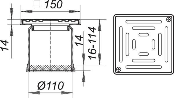 Dallmer Aufsatz Serie 10 KE 10, Rost Edelstahl 1.4301, 150x150mm W555113